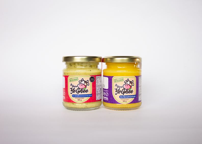 1 unidad de mantequilla Ghee de 200 gramos y 1 unidad Ghee de Finas Hierbas o de Ajo con Cilantro de 100 gramos. La Ghee es un tipo de mantequilla clarificada considerada como el ‘Elixir Dorado’ por la filosofía Ayurvédica debido a sus múltiples beneficios para la salud.